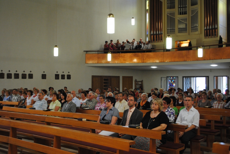 So verabschiedeten die Rommerzer ihren Pfarrer in einer Neuhofer Kirche, ließen die Messe aber dennoch zu einem für Pfarrer Axt freudigen Ereignis werden. Sowohl das Blasorchester Rommerz unter Leitung von Michael Klüh als auch der Gesangverein Harmonie, erstmals unter Leitung von Marcel Jahn, trugen dazu bei, dass der Gottesdienst einen schönen feierlichen Rahmen bekam.