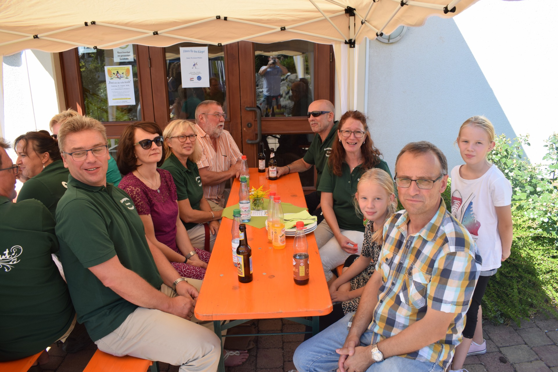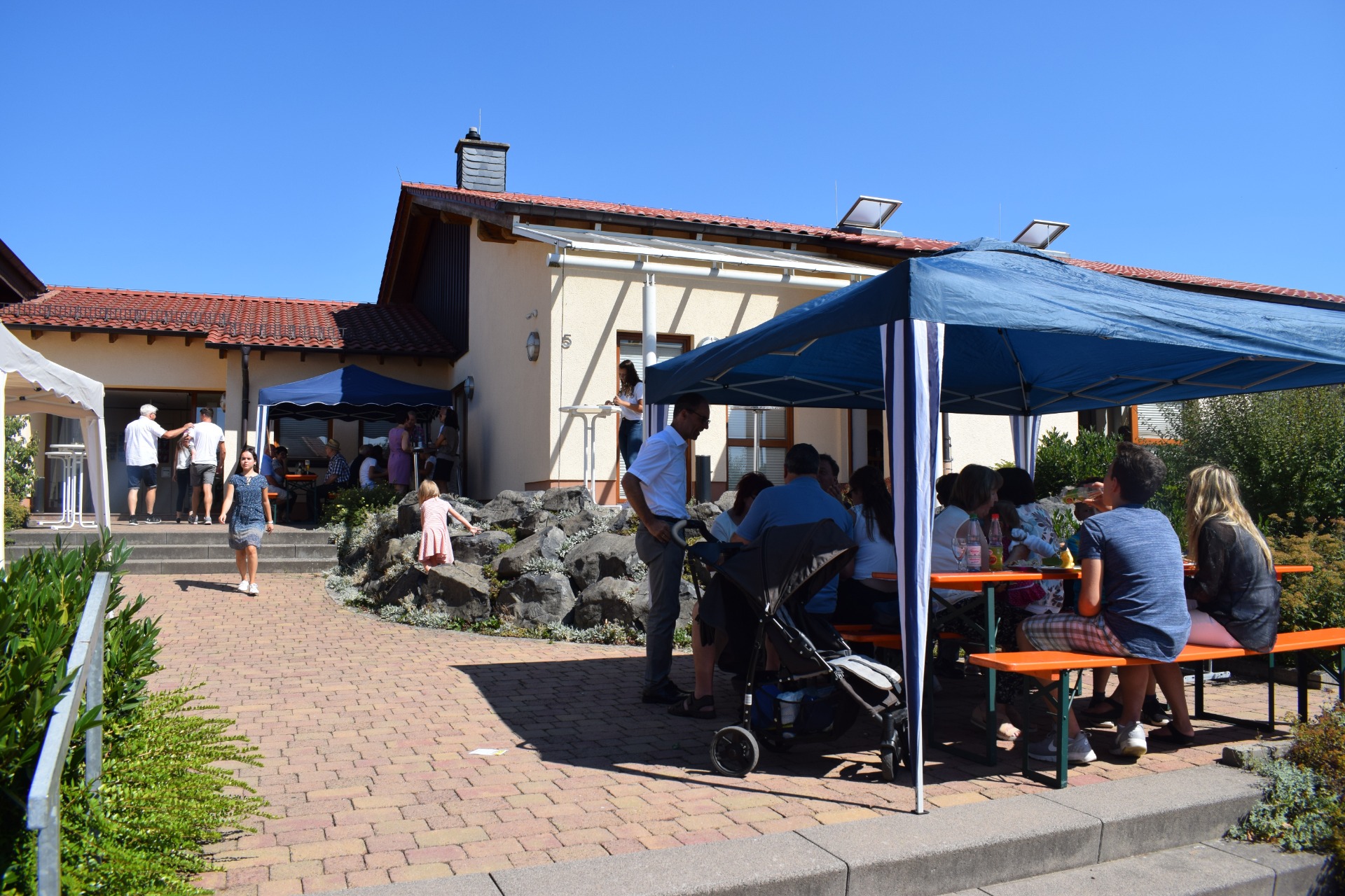 Beim anschließenden kleinen Pfarrfest im und vor dem Bürgerhaus herrschte geselliges Beisammensein bei leckerem Essen vom Landgasthof Imhof, ergänzt durch ein Buffet mit selbstgemachten Salaten. Organisiert hatten das Fest der Pfarrgemeinderat und der Verwaltungsrat. Wie der große Andrang auf den Bildern zeigt, waren zahlreiche Personen der Einladung gefolgt.