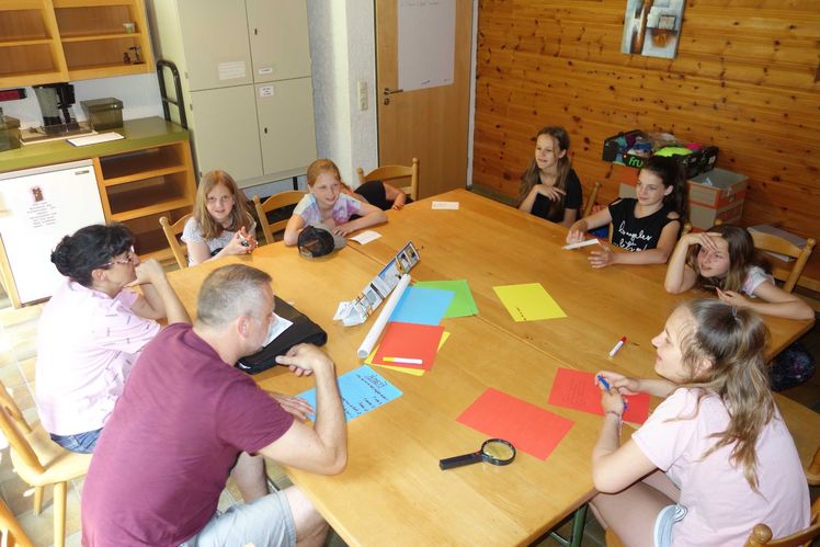 Nachdem das Haus und die Gegend erkundet und die Zimmer bezogen waren, haben wir uns in den folgenden Tagen mit der Einmaligkeit des Einzelnen beschäftigt: Wie kommunizieren Taube und Blinde? Wie spielen diese beinträchtigten Personen Gesellschaftspiele? Zum Abschluss des Workshops konnte alle Kinder durch die Unterrichtung durch Werner Althaus ihren eigenen Namen in der Gebärdensprache aufzeigen.